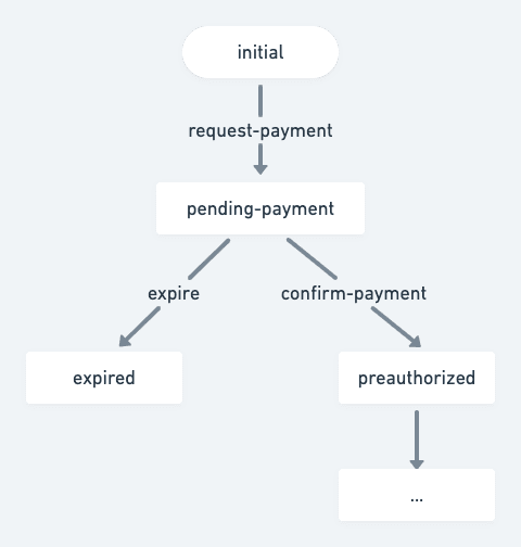Error handling in this model needs more attention than in the privileged transition model. If the payment action fails, the transaction is in a state where the transaction and payment are out of sync.